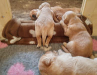 die Wurfkiste. Die erste Wurmkur haben sie auch schon bekommen.